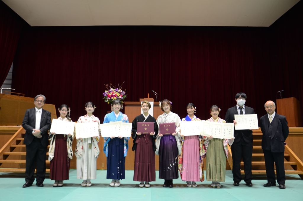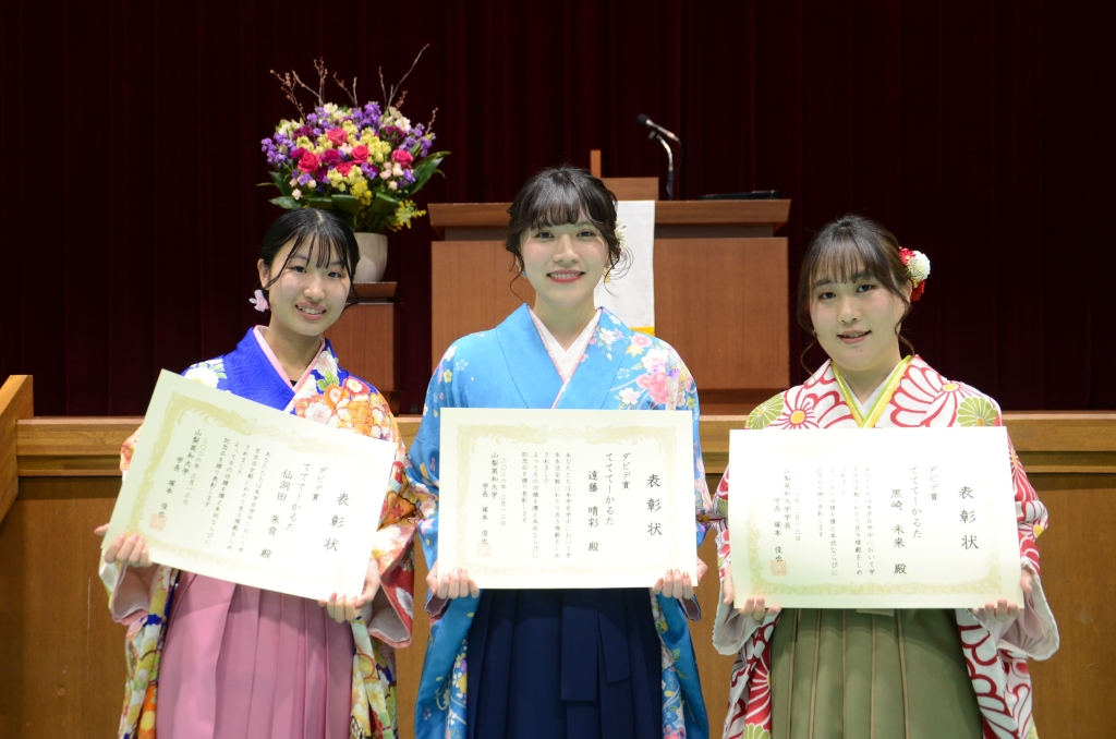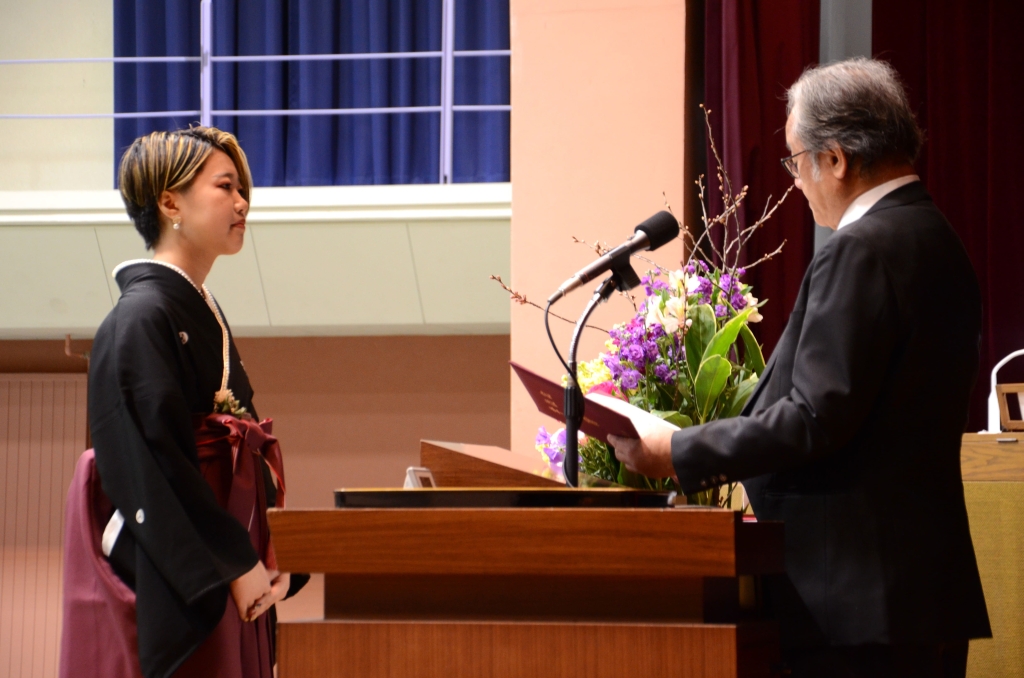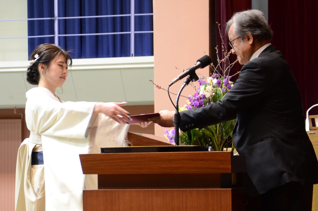 3月13日(金)、2025年度山梨英和大学人間文化学部及び大学院人間文化研究科学位記授与式を、本学体育館において執り行いました。