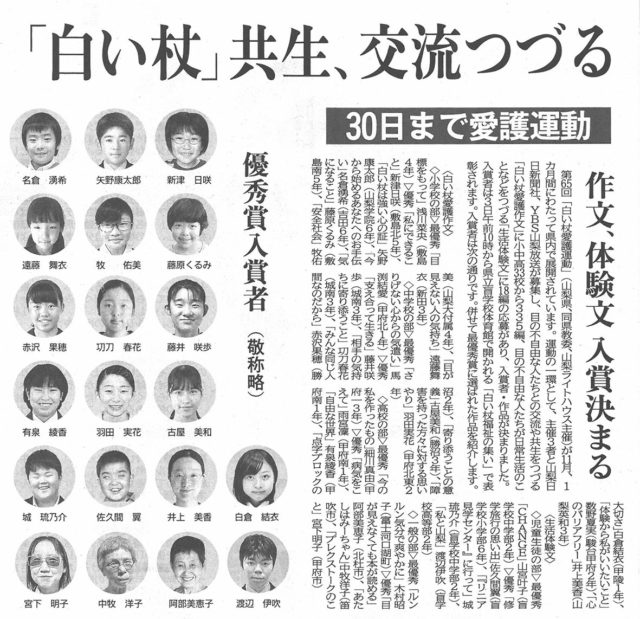 白い杖愛護作文にて『優秀賞』を本校生徒が受賞しました。