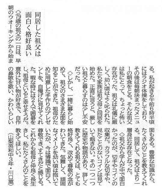 山梨日日新聞『10代の意見』に掲載されました。(6月4日…