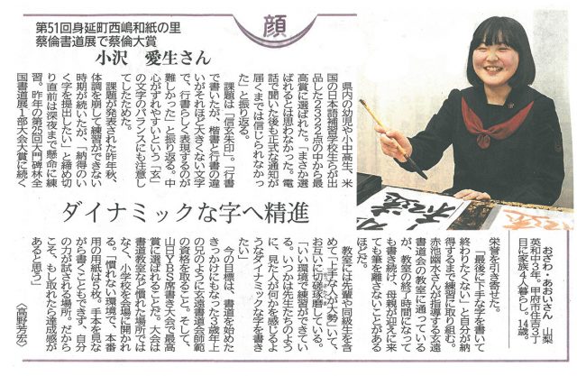 山梨日日新聞『顔』に本校生徒が掲載されました。(5月4日…