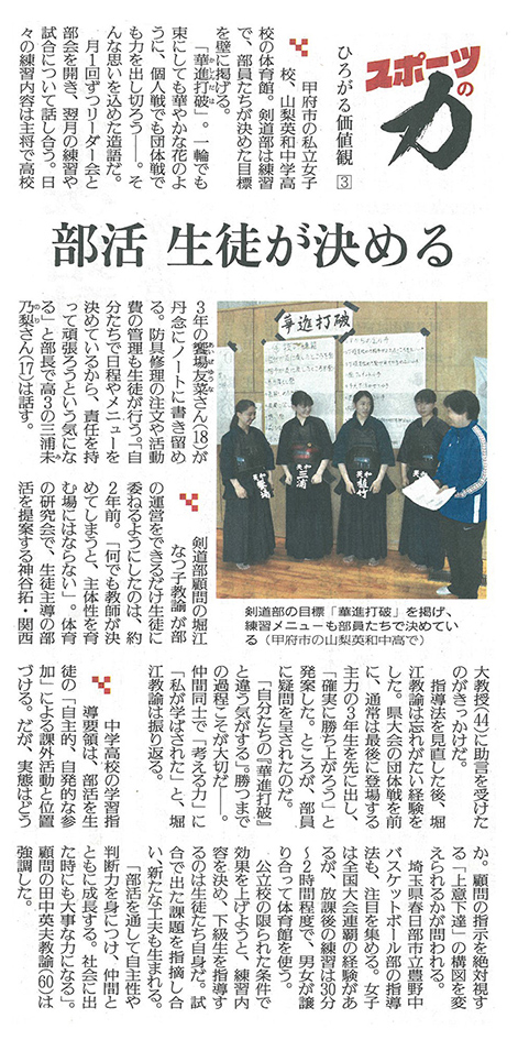 読売新聞一面に本校剣道部の活動が掲載されました。(6月1…