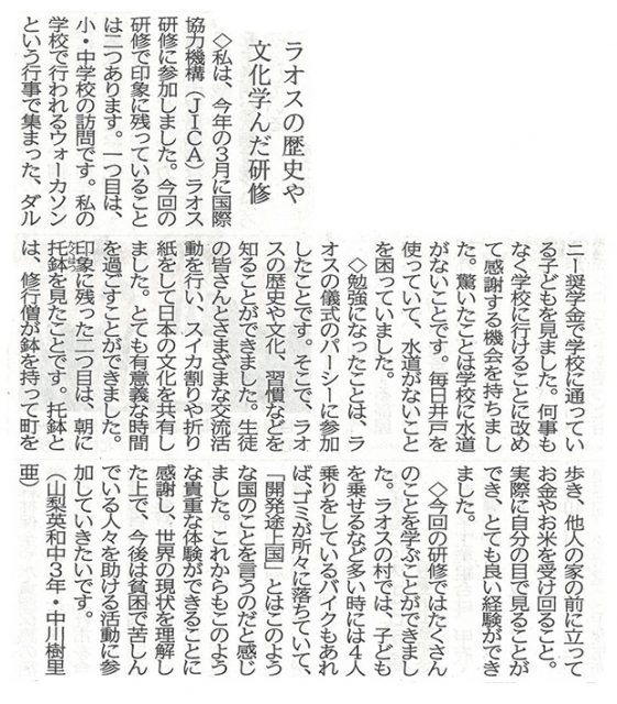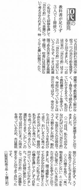山梨日日新聞『10代の意見』に掲載されました。(6月27…