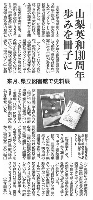 山梨日日新聞に山梨英和130周年記念事業について掲載され…