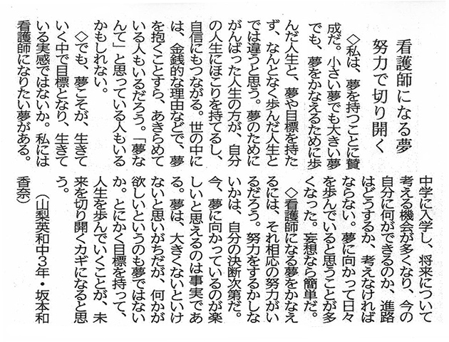 山梨日日新聞『10代の意見』に掲載されました。(2月19…