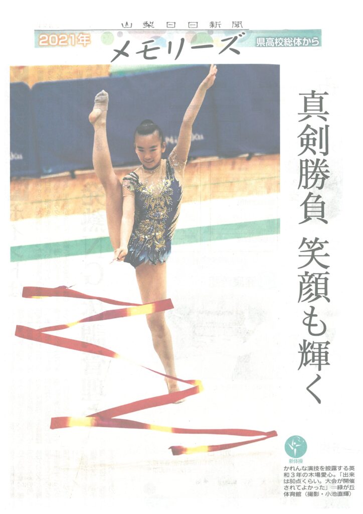 山梨日日新聞『メモリーズ』に県高校総体での活躍が掲載されました