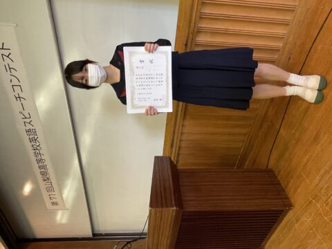 「第71回山梨県高等学校英語スピーチコンテスト」第2位入賞!
