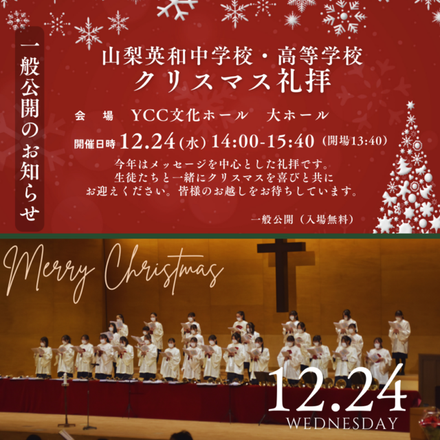 🎄山梨英和中学校・高等学校 クリスマス礼拝のご案内(一般公開・入場無料)
