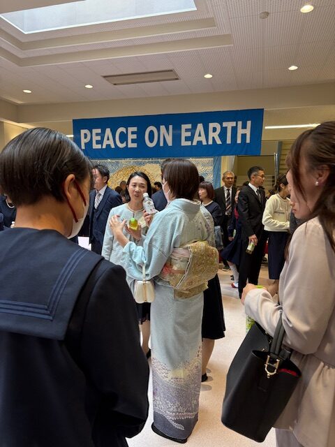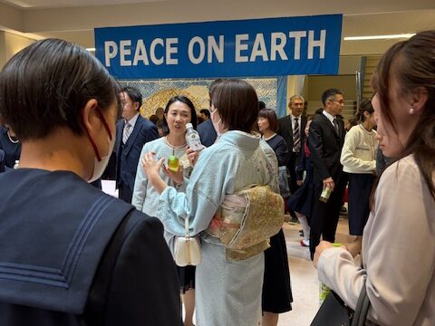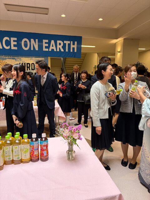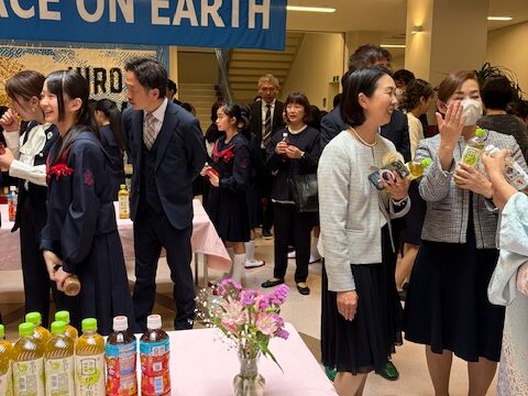 その後はメイプルホールへ移動し、PTA主催の「ティーパーティー」が行われました。生徒同士、保護者同士が交流を深めるひとときとなり、すでに大きな輪になって楽しそうに話す生徒たちの姿も見受けられました。翌日から始まる英和での生活への期待が、会場全体に温かく広がっていました。