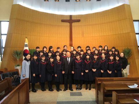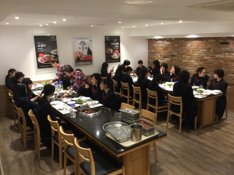 夕拝後、韓国人ガイドさんから、誕生日の生徒へのサプライズプレ