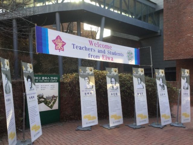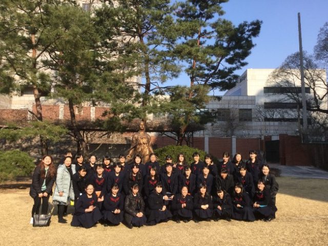 梨花女子高校を訪問。ユ・ガンスン像の前で記念撮影。