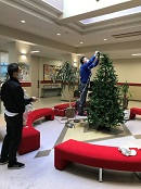 クリスマスツリー点火式(11月19日実施予定)を前に、PTAおやじの会の方々によりロータリーのツリーの飾り付け、メイプルホールと下足室のツリーの飾り付けが行われました。ご奉仕いただき、心より感謝いたします。