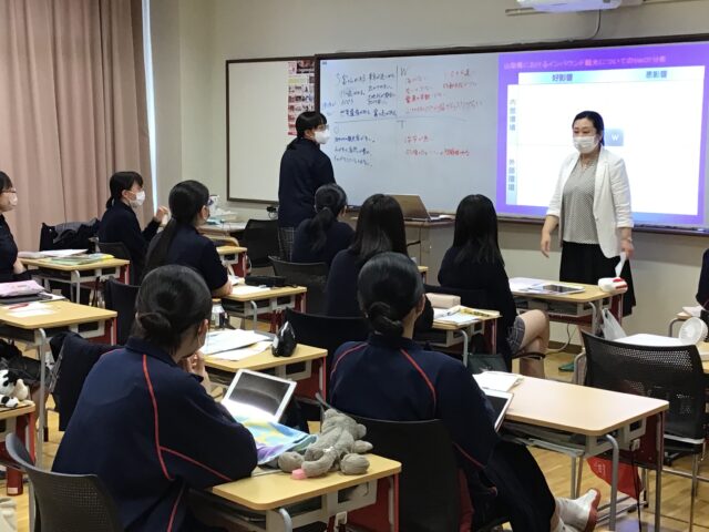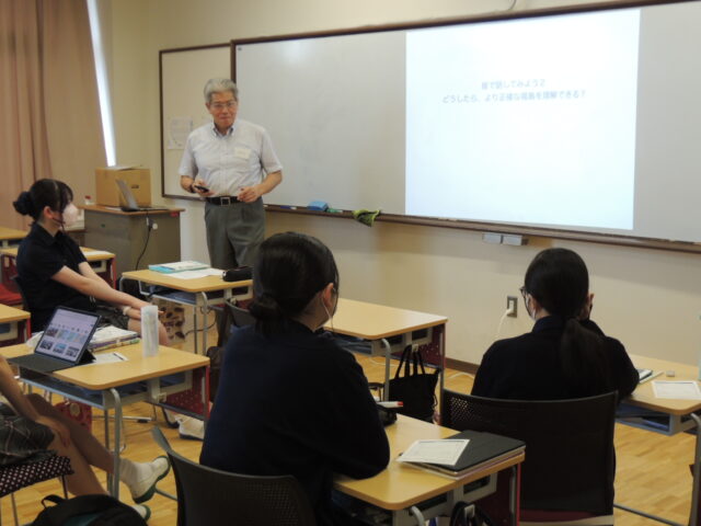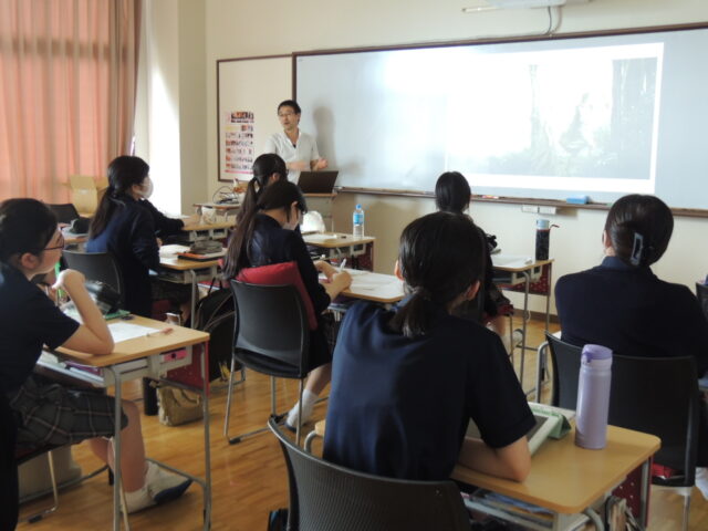 6月16(金)、高校1年生、2年生を対象に大学模擬授業を実施しました。進路行事である模擬授業は年2回(6月・10月)行われ、生徒は自分で興味や関心のある分野の講義を受けます。 講師の先生方の専門は様々で今まで意識したことのなかった学問分野に興味が広がった、さらに知識を深めるために普段から様々なことに目を向けていきたい、といった感想も見受けられました。 日頃の授業とは違う専門分野の研究の一端に触れ、今後の志望校・学部の選択に生かしていって欲しいと思います。 熱心に講義をしてくださった講師の先生方に心より感謝申し上げます。 <第1回大学模擬授業-分野タイトル> 【人文学】ギリシア・ローマ神話とヨーロッパ文学・芸術 【地球市民学】”今だからこそアフリカでのフィールドワークに参加しよう!” 【観光学】インバウンド観光 【心理学】心理学入門 【保育・幼児教育(心理学)】”子どもの心をのぞいてみる-子ども心理学のおもしろさ-” 【看護学】ストレスを考える 【情報デザイン】情報デザインの心理学 【薬学・生命科学】細胞のストレス応答と脳におけるその破綻 【食品科学・食品開発】発酵食品と発酵を抑える方法 【音楽・エンタメ】作曲入門・音楽と動き