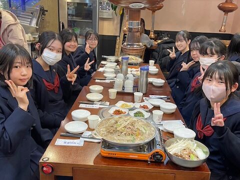 また、「韓国コース」も堤岩教会→統一展望台・自由の橋→タッゴル公園を見学し、夕方には現地で大人気の「NANTA」🎶を鑑賞しました。明日は、いよいよ姉妹校の梨花女子校との交流会です。その後に予定されているペンパルとの自由行動も待ち遠しいですね。