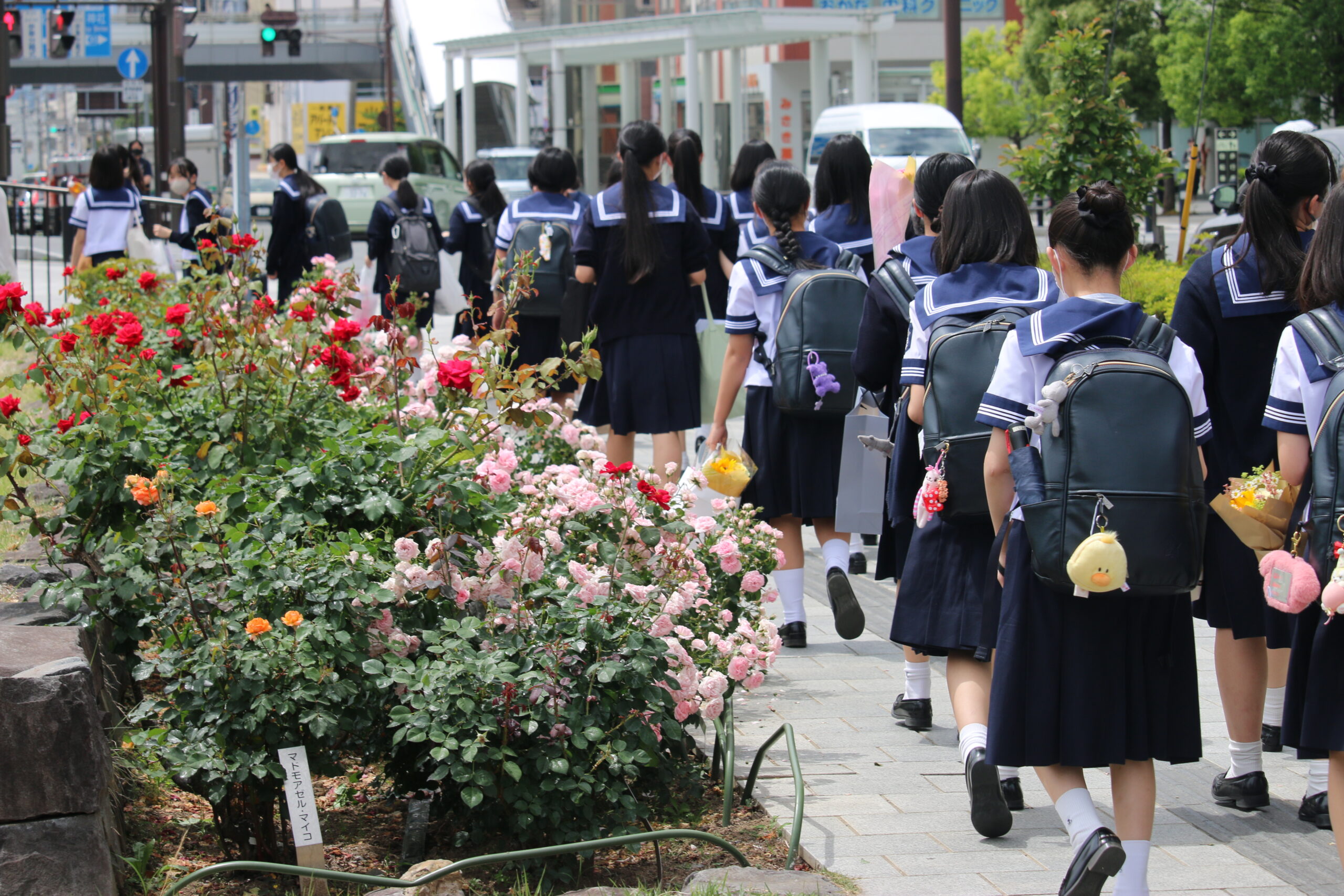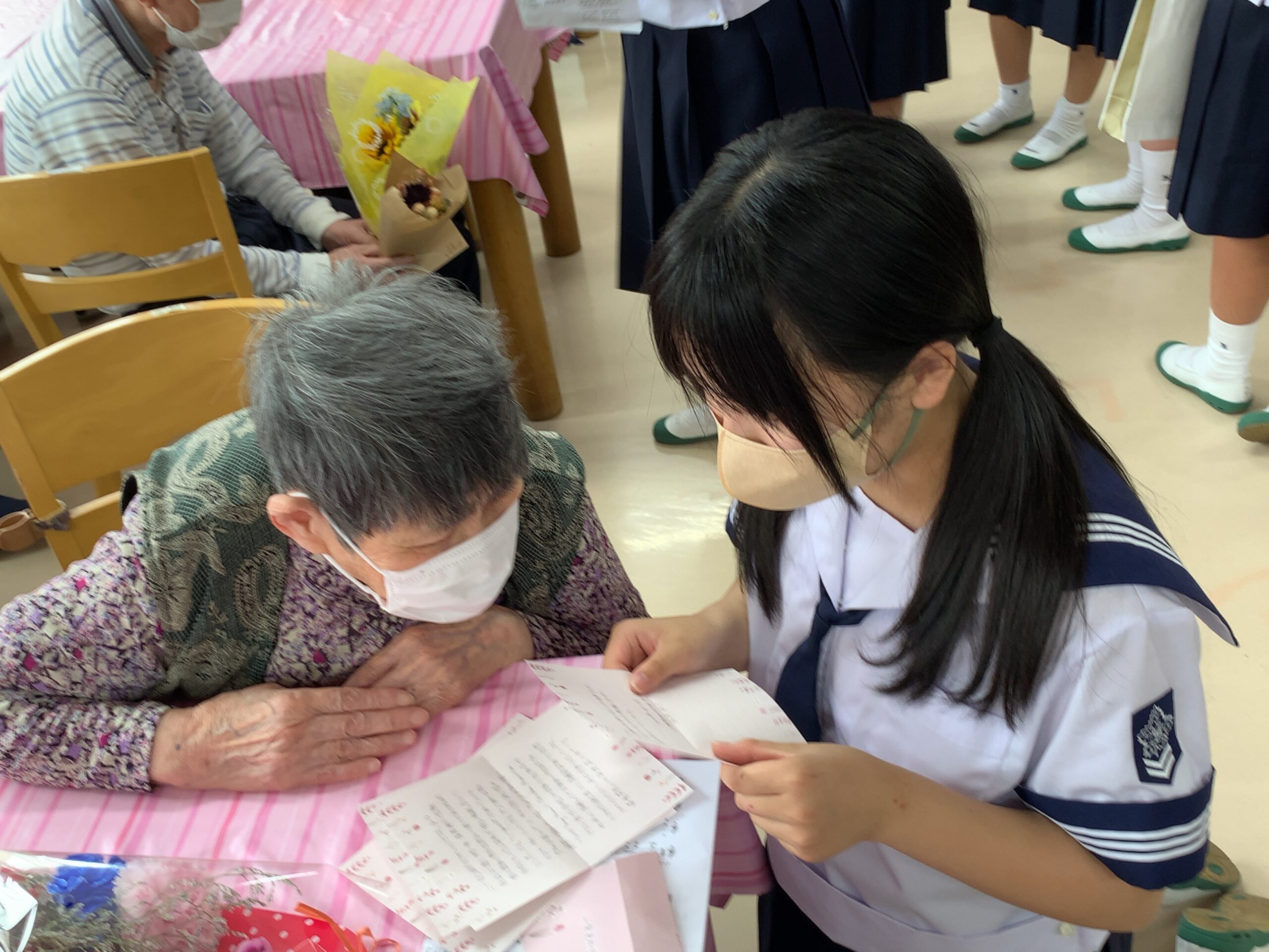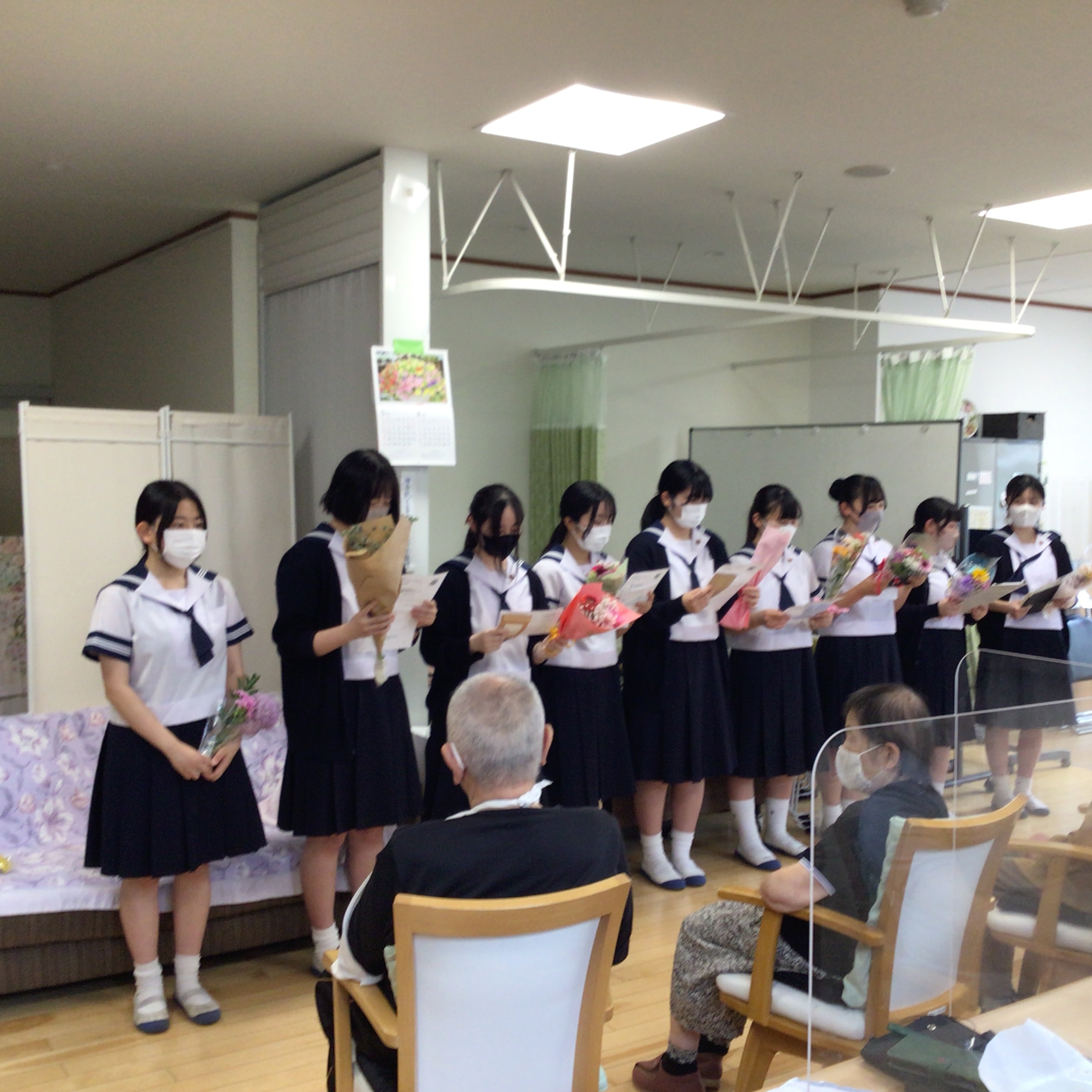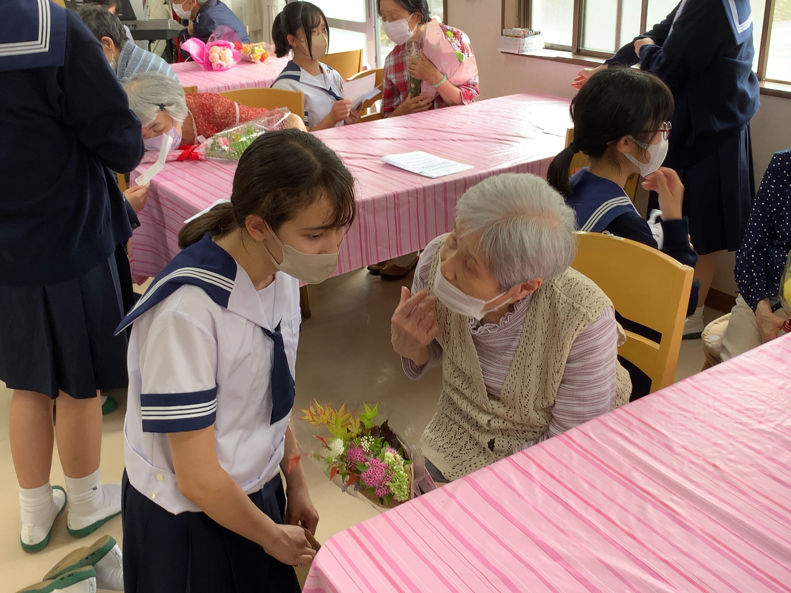 5月27日(月)山梨英和中学校・高等学校は135回目の創立記念日を迎えました。全校での記念礼拝では、講師に本校卒業生であり、教師としても教鞭をとられていた榎本富美子先生をお迎えし、神様に愛され、まもられている私たちがそれをあたりまえのこととせず、困難な生活を強いられている方々のために何ができるのか考え、祈る生活をするように、励ましをいただきました。午後からは、花束と手紙を手に県内21箇所の病院・福祉施設を訪問しました。入院されている方や入所者の皆さんと、久しぶりに交流することができました。昨年までの制限のある中では見ることのできなかった皆さんの笑顔に、元気をいただきました。温かく迎えてくださった皆さまに神さまの豊かな恵みをお祈りいたします。