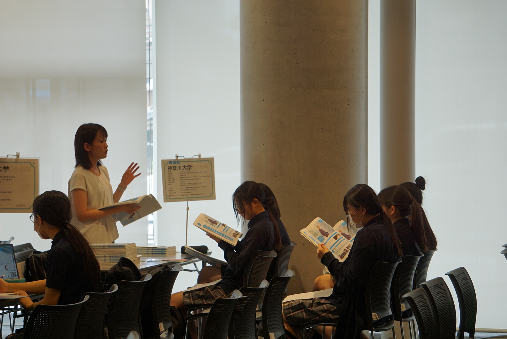 12時30分からの1時間は、高校3年生の優先入場とし、ゆっくりと時間をかけてブースを回ることができました。13時30分からは、高校1・2年生も参加しました。