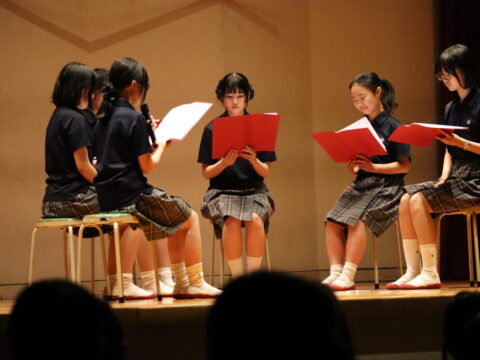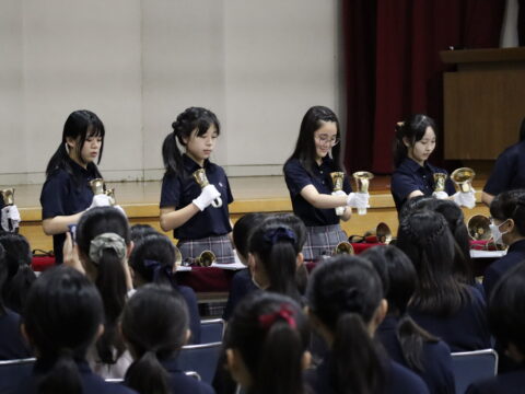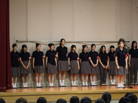 テーマは「美少女戦士」!1日目はオープンニングに続き、文化局発表!マンドリン部、語学部、放送部、文芸部、そして聖歌隊のみんなの発表を全校生徒で見ました。普段と違った友だちの姿や頑張り、そして普段通りの!?友だちの元気な姿に感動を貰えました。午後からは全校企画と明日の合唱祭の練習、そして一般公開日の準備と大忙しの1日でした。学年企画では縦割りグループでいろいろなゲームに挑戦できたことで、先輩、後輩の枠が外れ、28日、29日と続く、学園祭が更に楽しいものになりそうです🎀