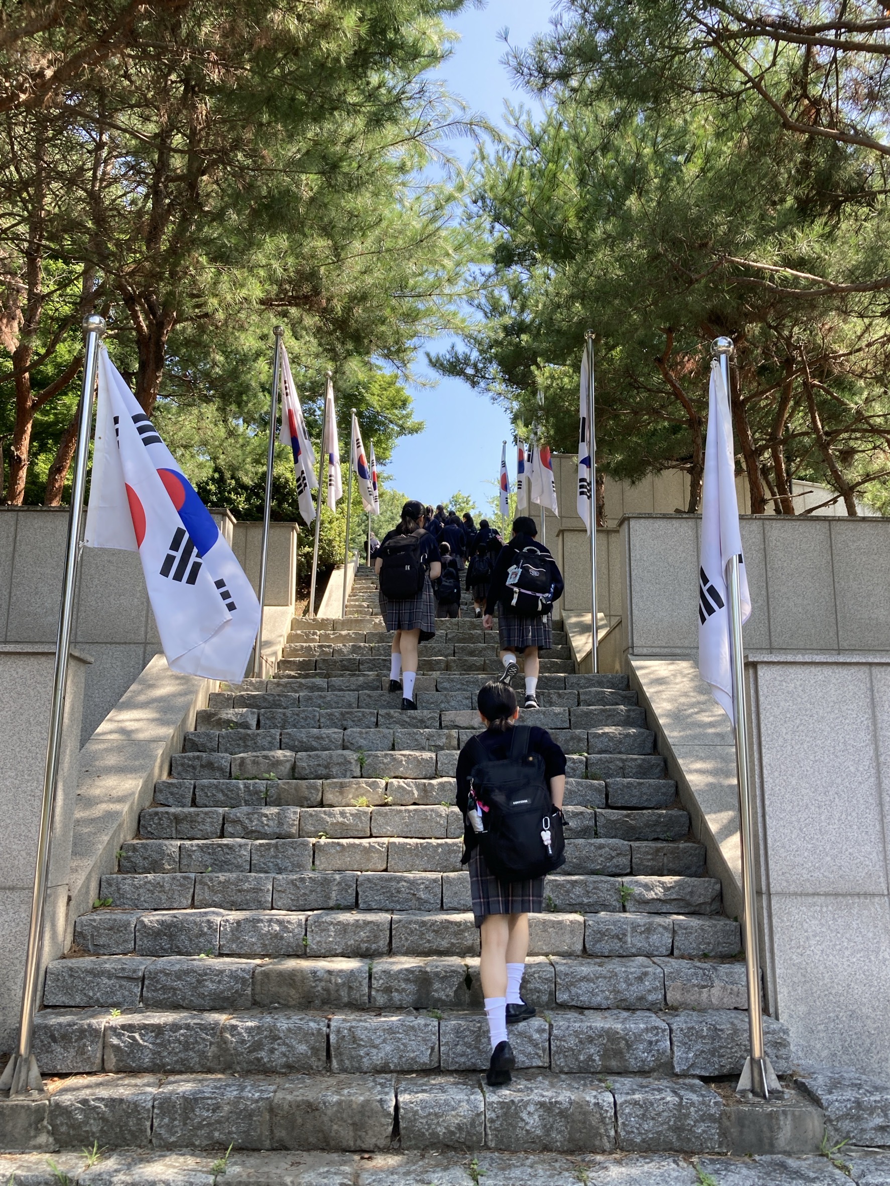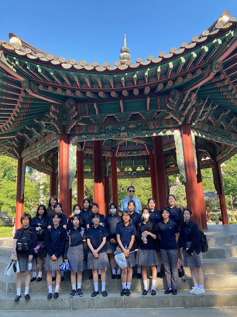 高1・高2の17名が7月9日(水)~12日(土)までの予定で、現在、姉妹校である韓国の梨花女子高校を訪問しています。9日早朝に出かけ、現在、3日目の日程を終えるところです。昨日は今回のメインイベントである梨花女子高校を訪問し、交流の時間を持ちました。午後からは生徒同士で自由にソウルの街を散策✨山梨と変わらないほどの気温ではありましたが、事前に連絡を取り合っていた生徒のみなさんと対面しながら、いろいろな話ができたことは貴重な経験になりました。姉妹校なので、また会える機会はあるはず!!再会を約束してお別れしました✨