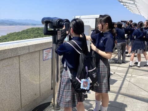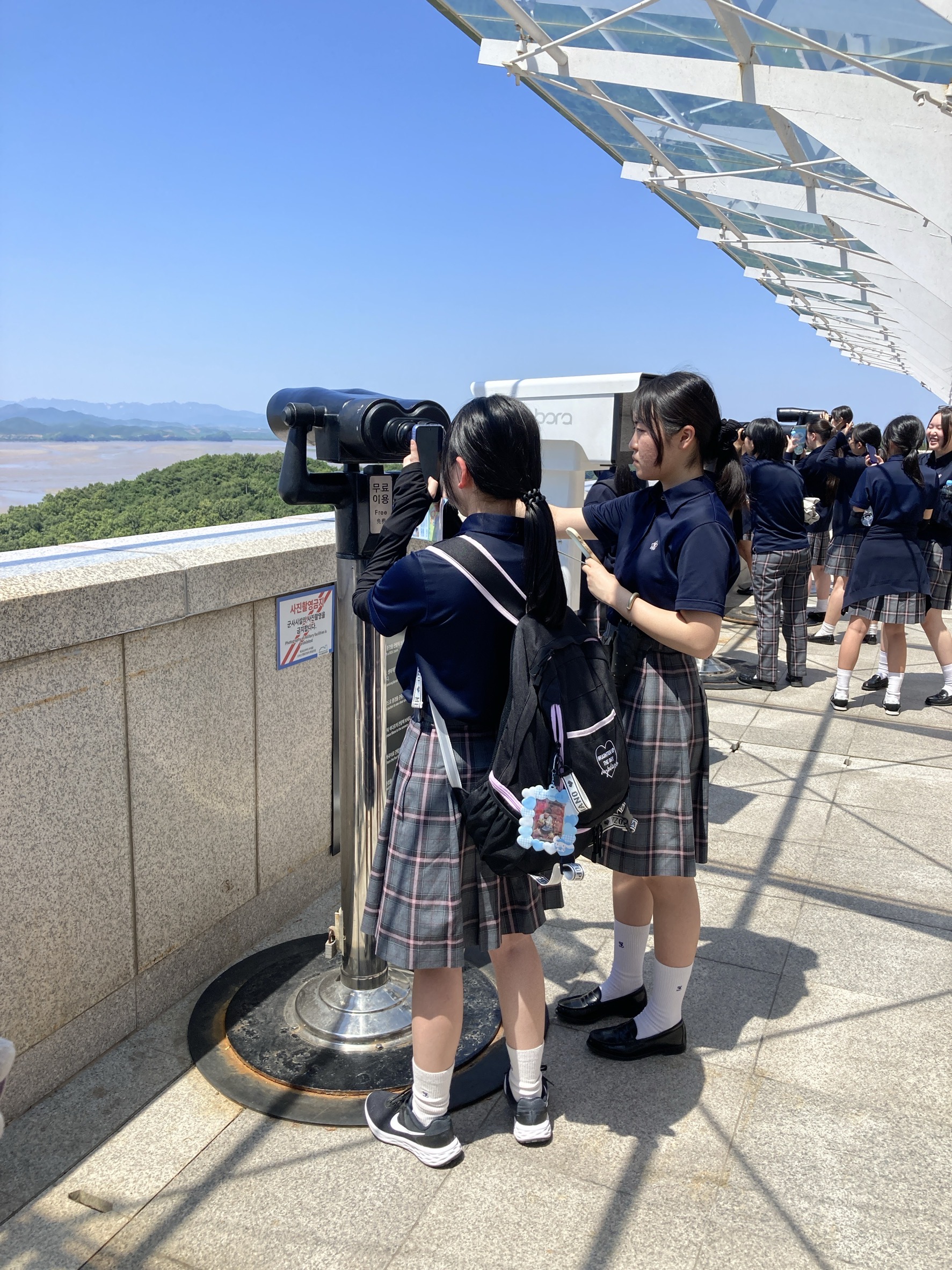 3日目にはまず提岩里教会を訪ねました。この教会は、韓国・京畿道華城市にある歴史的なキリスト教会で、三・一独立運動の象徴的な舞台の一つです。特に1919年4月15日に起きた「提岩里教会事件」は、韓国近代史に深い傷跡を残しました。記念館にある事件の資料、牧師先生から講話などから日韓の歴史について学び、今ある「平和」について考えました。その後は統一展望台・自由の橋へ。北朝鮮の風景を間近に見ることで、言葉にできな気持ちがこみあげてきました。距離は近いのに、心の距離はとても遠い・・。分断の現実を肌で感じた私たちだからこそ、未来の平和に向けてできることがあるはずです。小さなことから始めていきたい思いました。