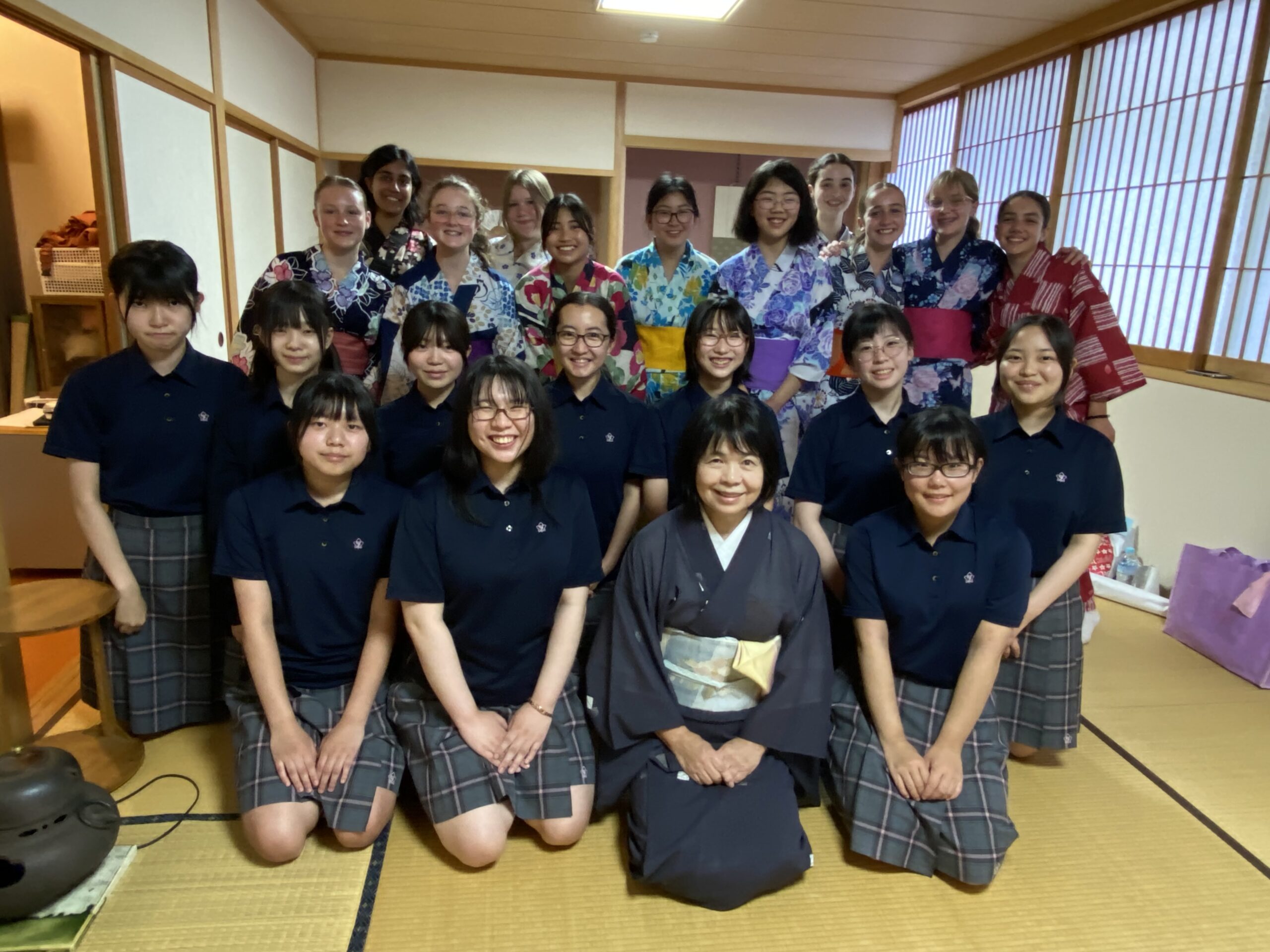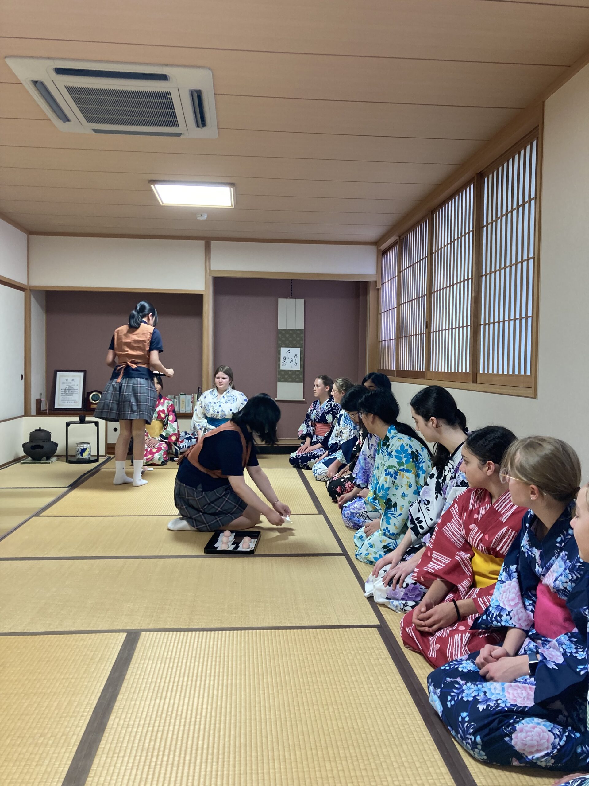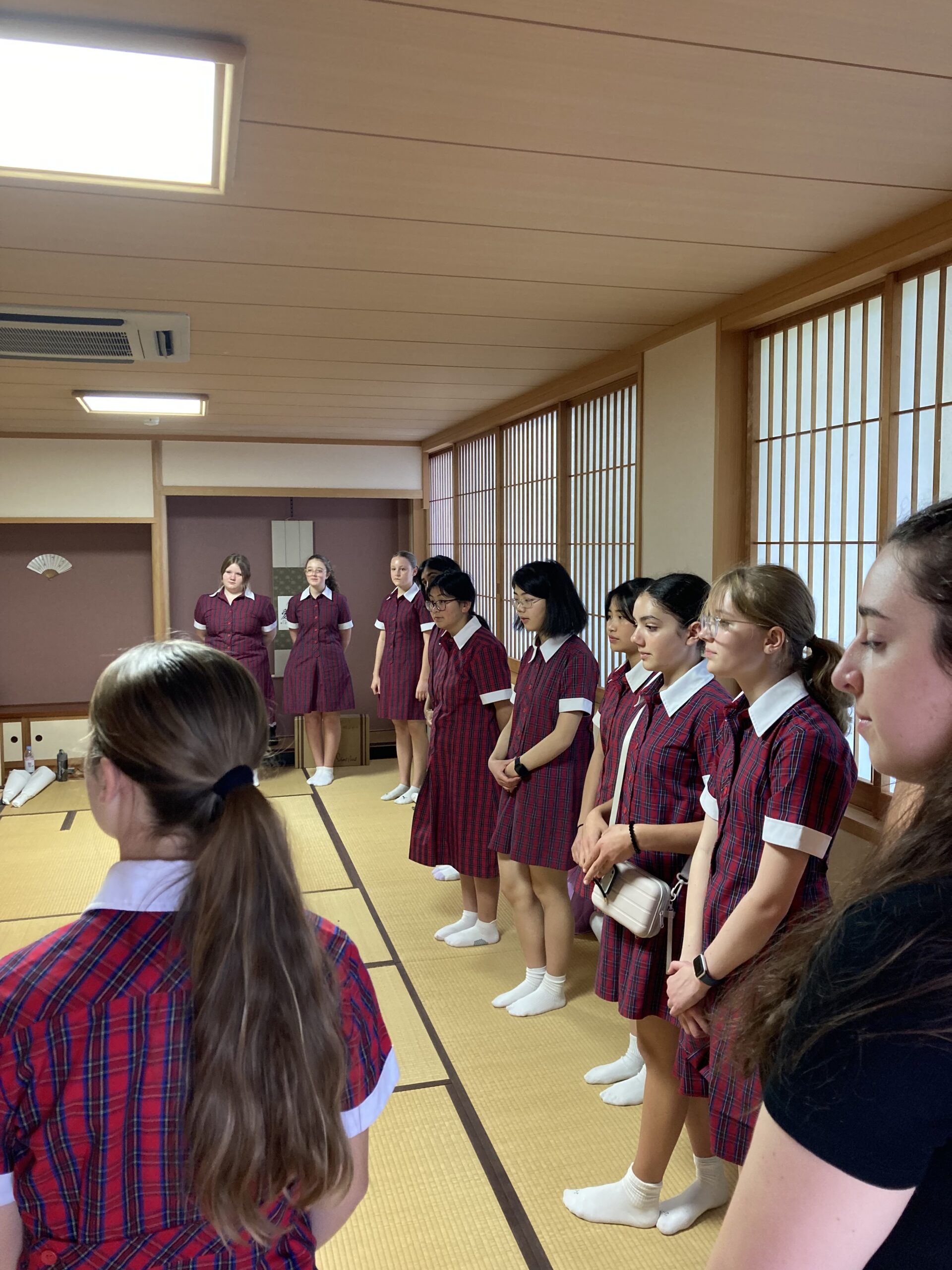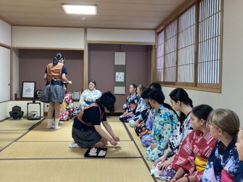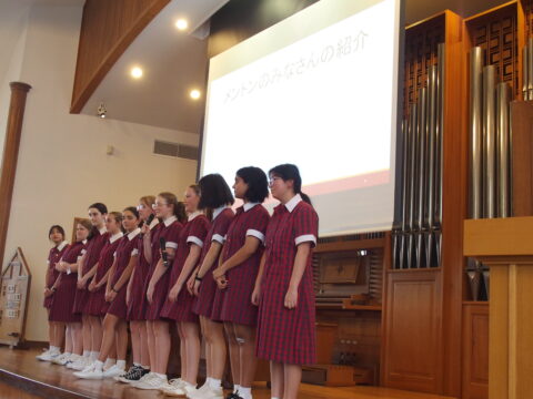 昼頃に到着したメントン生たちは、ホストシスターと対面し、その後、日本文化体験として、華道と茶道にチャレンジしました。特に茶道では、初めての浴衣に大喜びしつつ、正座に四苦八苦するメントン生たちの姿がたいへん微笑ましく、本校茶道部の生徒たちも教えるのに熱が入りました。その後の高校1年生・2年生との交流会では共に礼拝の時を持ち、両校代表によるスピーチ、メントン生たちの自己紹介が行われました。その後はメントン生たちの控室に生徒たちが押し掛け💨生徒同士での交流も図ることができました。言語の壁はあっても、なんとか気持ちを伝えたいという思いが交流の第一歩となります。生徒たちが一生懸命に話しかけ、メントン生たちがなんとか理解しようとする姿が印象的でした。メントン生たちは、12日(土)13日(日)をホストシスターの家庭で過ごし、14日(月)朝には山梨を出発し、金沢へ向かいました。またメントンのみなさんと合いできる日を楽しみにしています✨