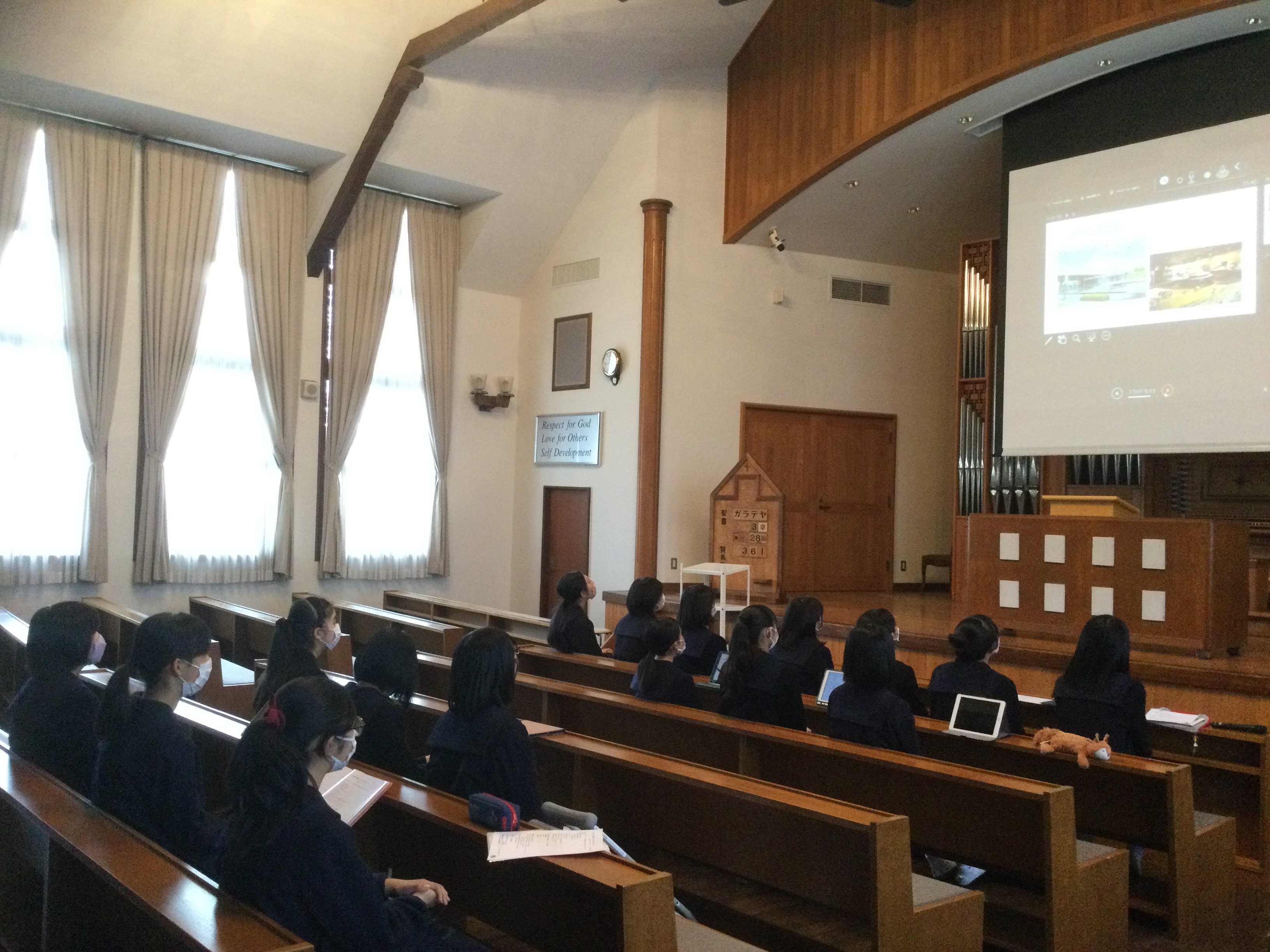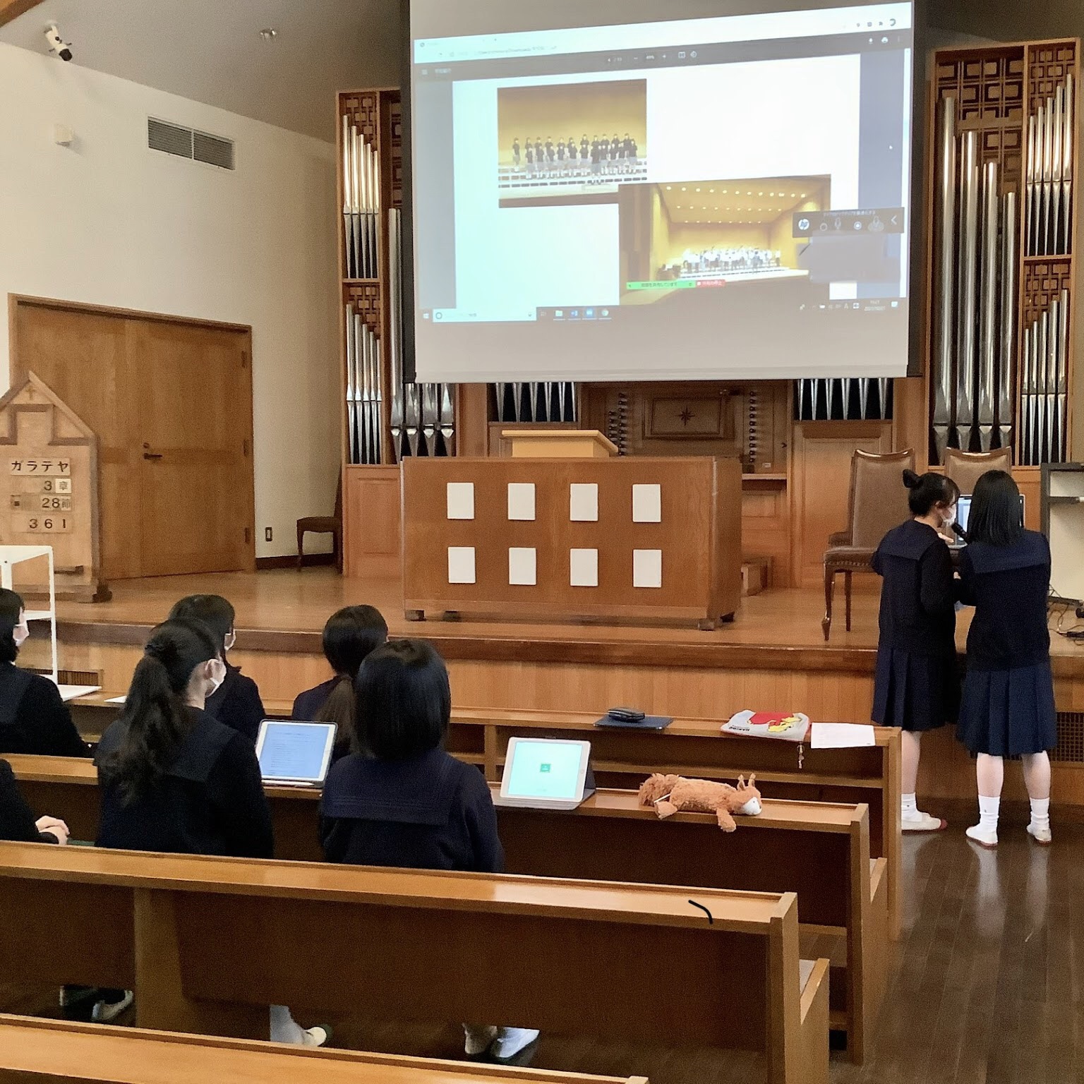 10月21日(木)に、中学・高校生徒会役員のメンバーがわかば支援学校のみなさんと交流の機会を持ちました。オンラインではありましたが、お互いの学校生活や行事などを、スライドを使って紹介し合いました。また興味を持ったことを質問し合うなかで、新たな発見もあり、楽しい時を過ごすことができました。直接会うことはできませんでしたが有意義な時間となりました。次回は、会えることを楽しみにしています。