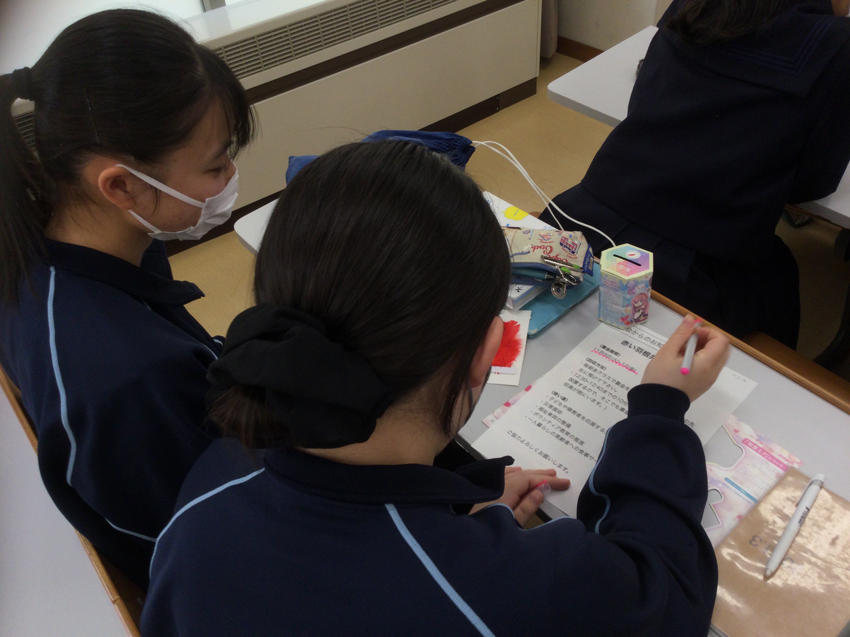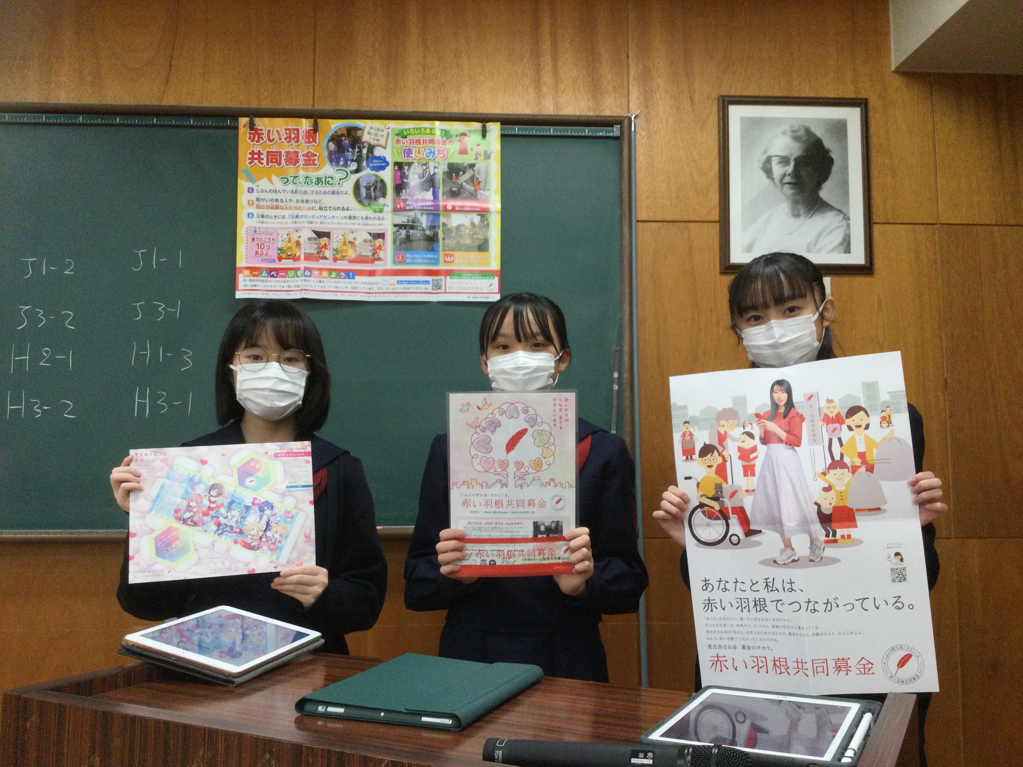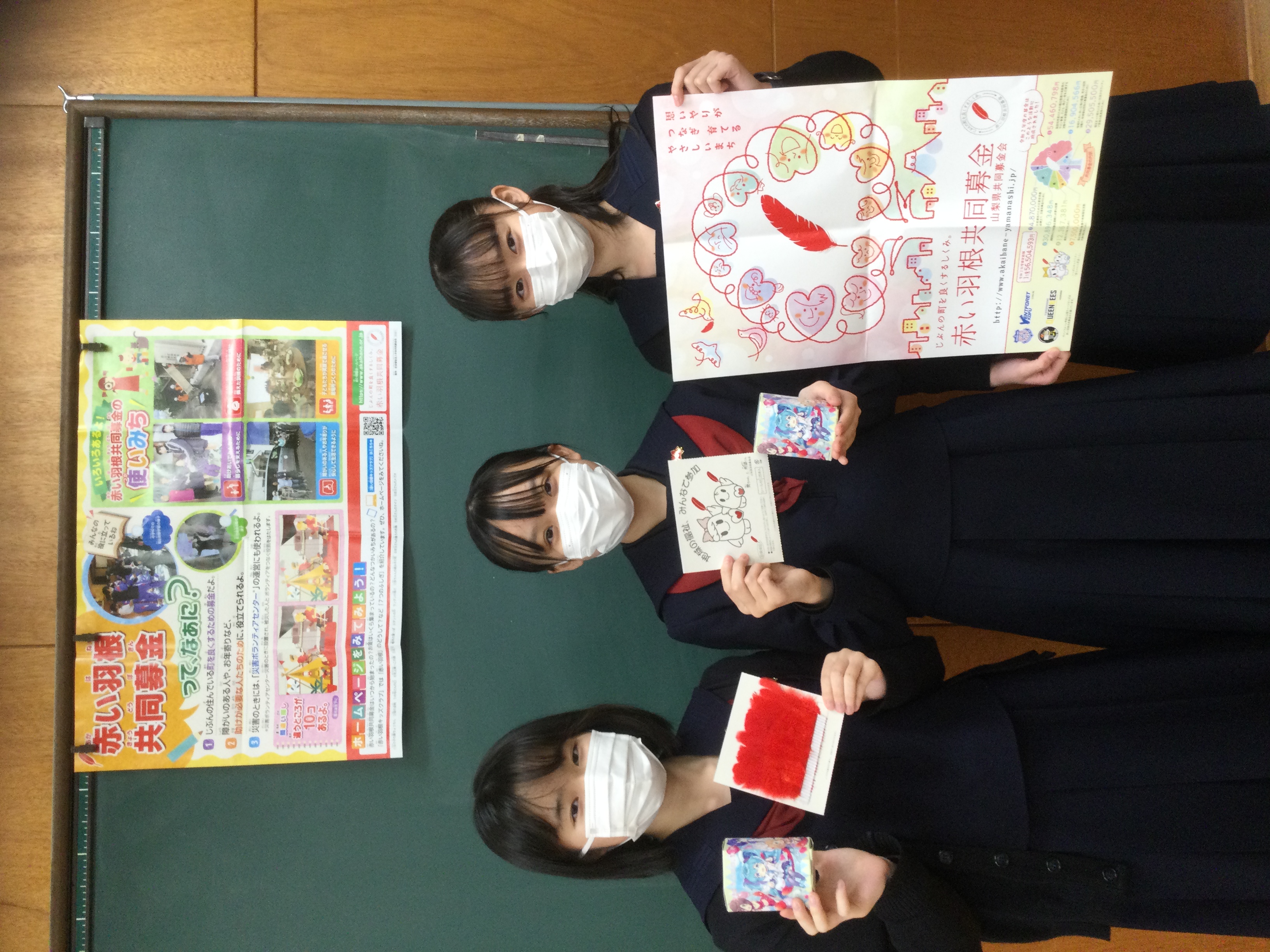 山梨英和中高では毎年、赤い羽根共同募金に参加しています。 今年も各クラスのリーダーに集まってもらい、募金の呼びかけをしました。 集めた募金は、子どもや障害者の方々への支援や災害援助に使用されます。 私たちの活動が困っている方やサポートしている方のお役に立てればと思います。(中高生徒会より)