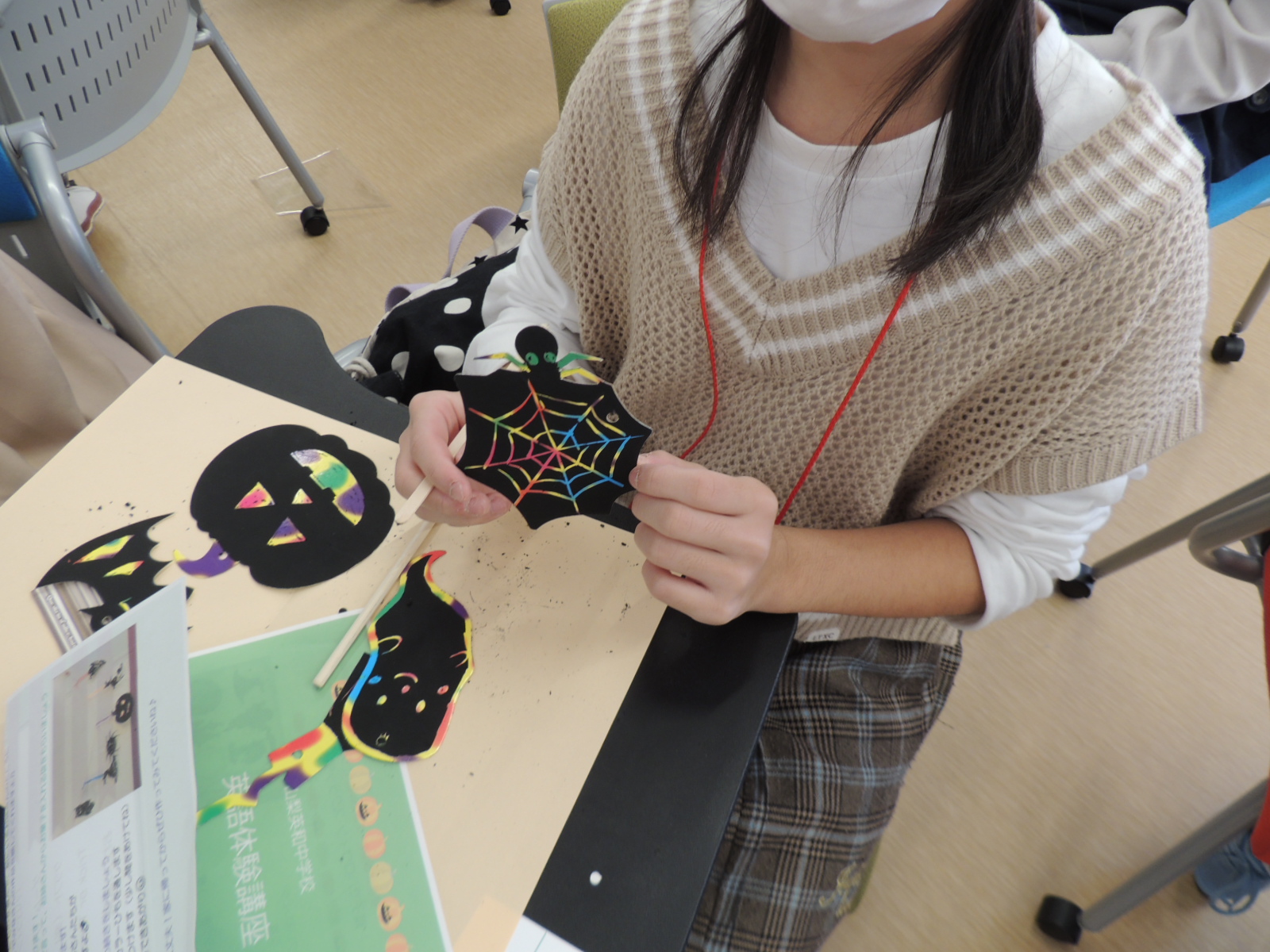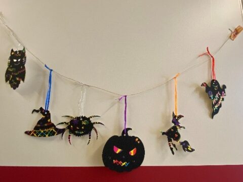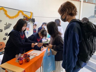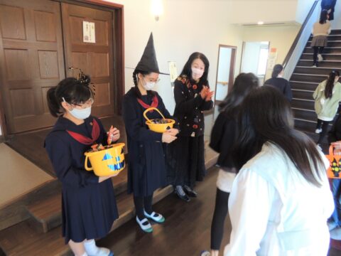 10月29日(土)に小学4年生~6年生を対象に英語体験講座「Halloween」を行いました。親子でハロウィンのゲームや工作を楽しみながら、「英和の英語」を体験していただきました。最初は恥ずかしそうにしていた小学生のみなさんも、お手伝いボランティアの英和生と一緒に発音したり、ゲームを楽しんだりしていました。工作ではスクラッチアートにチャレンジ!なかなか個性的なハロウィンガーランドができあがりました。そして最後はお楽しみイベント、”Trick or Treat”!盛りだくさんなHalloween Partyになりました。