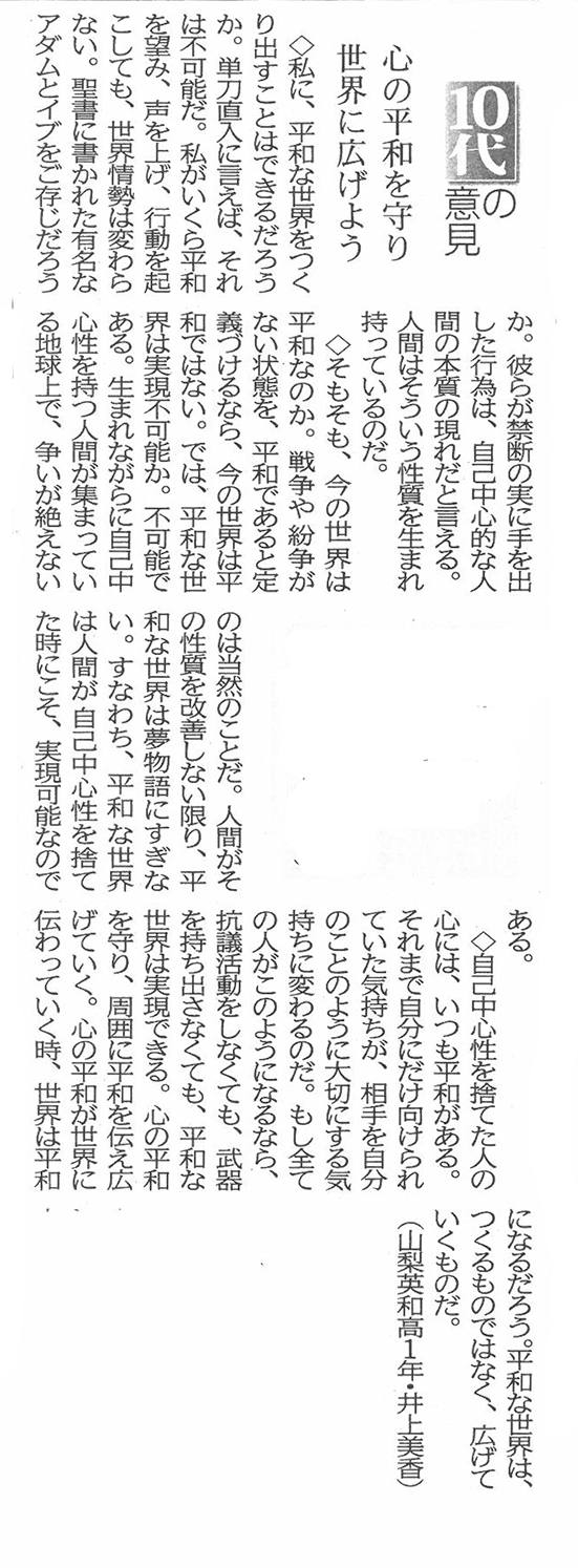 山梨日日新聞 2017年8月19日付「10代の意見」