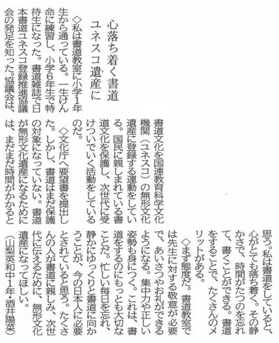 山梨日日新聞「10代の意見」に掲載されました