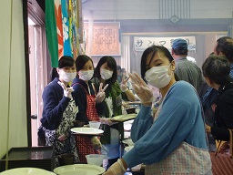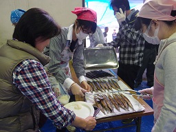第2部の販売は大盛況で、長い行列ができました。400名以上の参加があったということです。配膳したり、容器の片づけをしたり、道案内をしたり。目が回るような忙しさでしたが、全員笑顔で対応することができました。働いた後のサンマ定食はとってもおいしかったです。スタッフの方には大変お世話になりました。ありがとうございました。次回もぜひ参加したいと思います。