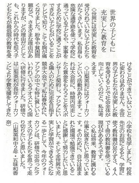 山梨日日新聞『10代の意見』に掲載されました。(6月4日, 12日付)