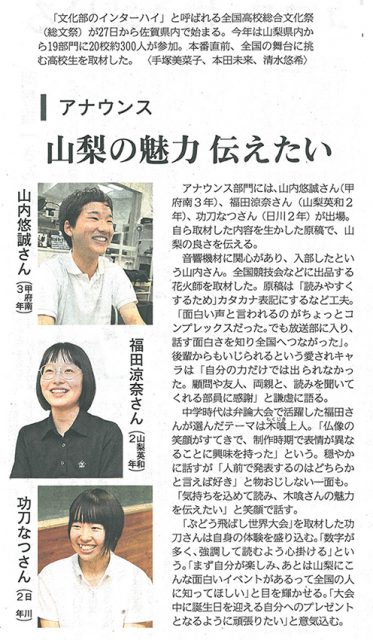 山梨日日新聞『文化・くらし』に掲載されました。(7月26日付)