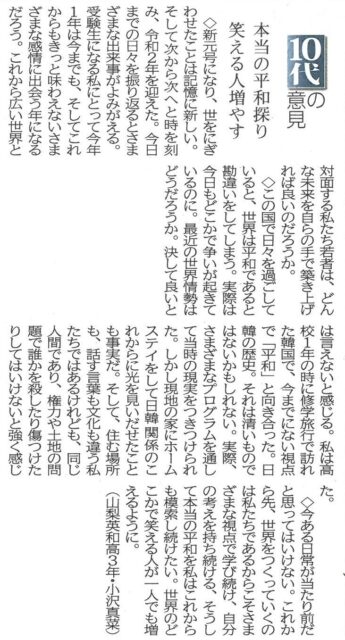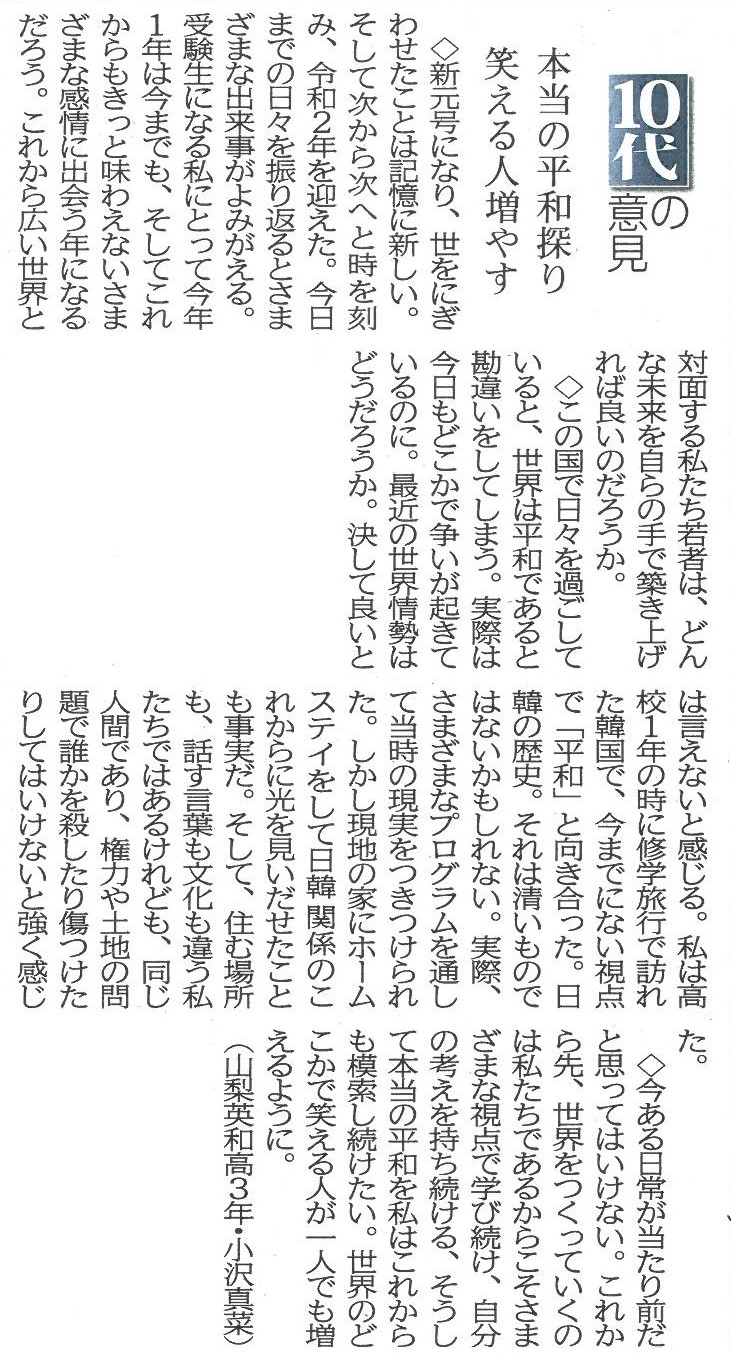 山梨日日新聞『10代の意見』に掲載されました。(9月5日付)