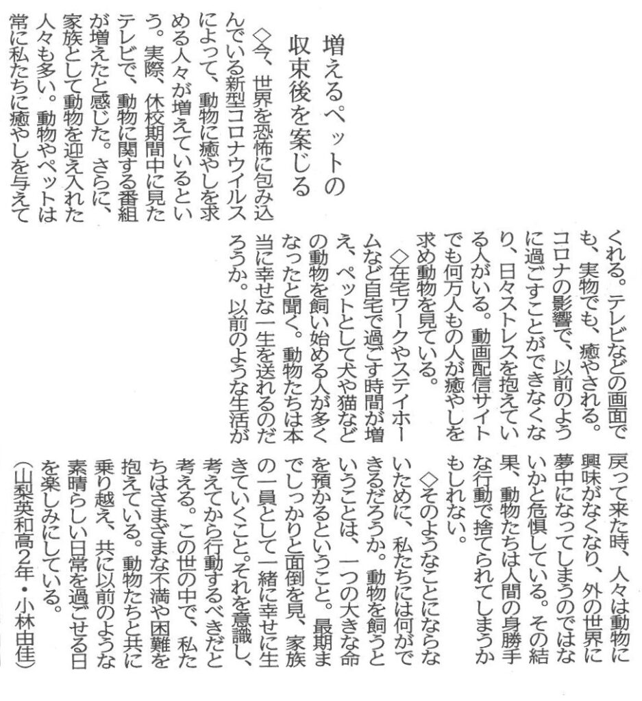 山梨日日新聞『10代の意見』に掲載されました(1月9日付)