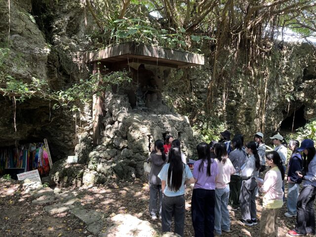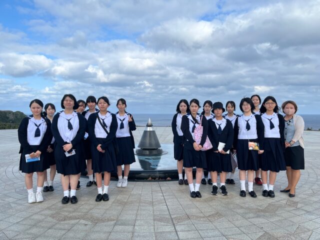 「ひめゆりの塔では、私たちとなんら変わりない日常を過ごしていた女学生や先生たちが被害者となったことを学び、平和祈念公園では当時の戦場となった場所に直接行き、当時の苦しさを想像しながらガイドさんのお話を聞けました。多くの方が自決した断崖絶壁から見える海は、当時血で真っ赤に染まったそうです。今のエメラルドグリーンの海からはとても想像しがたい風景です。」