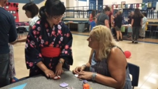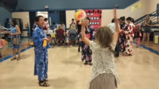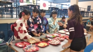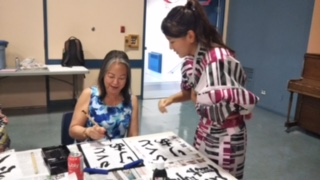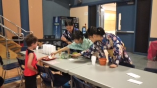 夕方は浴衣に着替えて、日本文化を紹介するCultural sharing を行いました。カナダの方たちに書道、お菓子、日本の遊び、茶道について紹介し、楽しんでいただくことができました。