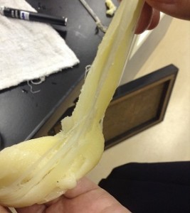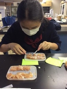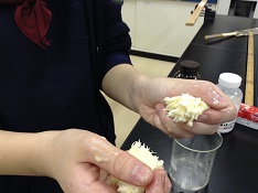 SSHⅠやSSHⅡで、山梨学院大学の辻政雄先生に指導助言をしていただいています。各グループの研究内容は以下の通り。 ■「裂けるチーズの裂け方の違い」の研究(SSHⅠ) 熟成させないタイプのモッツアレラチーズなどを、80℃でこねて伸ばしながら重ねると繊維状になり、それを水に入れて冷やすと裂けるようになります。pHを変えて裂ける様子を観察します。難しいのは温度管理。よく裂けるチーズの条件を見つけられるよう実験を重ねています。 ■「各種デンプンによるくず餅の性質の違い」の研究(SSHⅠ) とても高価なくず粉でできている関西風の柔らかなくず餅を、安価なデンプンを使ってつくろうと実験を始めました。デンプンは種類によって、糊化や老化の仕方に違いがあります。硬さや透明感を測定し、それぞれの違いを確認しながら実験を進めています。 ■「野菜や果物が塩麴の効果に与える影響」の研究(SSHⅠ) 肉などを漬け込むと柔らかく美味しくなると近年ブームになった塩麴。その塩麴に野菜などを加え、もっと柔らかくなるものをつくろうと試行錯誤しています。まず、どんな野菜や果物にタンパク質分解酵素が多く含まれているかを実験で確かめます。手作りの装置で上手くデータがとれた時には、喜びもひとしおです。 ■「餅の柔らかさに対するトレハロース濃度効果」の研究(SSHⅡ) 今年度前期では、砂糖よりトレハロースの方が餅の柔らかさが持続し、またトレハロース濃度が高いほどその効果が大きいことがわかりました。但し、常温に置いておくとカビ等が発生し保存性に問題がありました。そこで後期では、餅を長期に保存するには冷凍するのが良いのではないかと考え、冷凍時並びに解凍時の餅の温度変化や解凍後常温に戻した時の餅の柔らかさについて実験を進めています。 【謝辞】 ご多用の中、本校SSH事業のためにご協力をいただいております先生に心より感謝いたします。