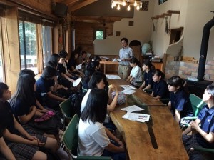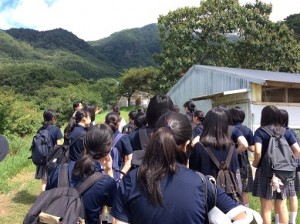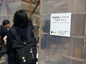 8月25日(木)、山梨県甲斐市の黒富士農場にある山梨自然学研究所を訪問し、再生可能エネルギーや微細藻類の培養について学習しました。この研究所は、自然科学同好会で共同研究を行っている山梨大学の御園生研究室が全面協力をしている場所です。クロレラなどの微細藻類と生物活性水に鶏の糞などを加えて培養します。ここで育ったクロレラなどは発酵させ、ニワトリの有機飼料に混ぜ、黒富士農場ブランドの卵として、私達の食卓に回ってきます。今回もオーナーの向山さん、山梨大学の御園生教授より講義していただき、再生可能エネルギーや循環型社会の大切さ、微細藻類の未来の可能性について改めて学ぶことができました。