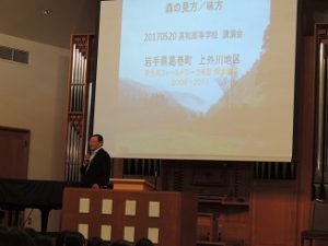 5月19日(金)、今年度最初のSSH特別講演会を実施しました。都留文科大学より高田研先生を講師にお招きし、「『森の見方/味方』持続可能な社会を考える―岩手県葛巻町上外川地区の生活誌から」と題してお話を伺いました。大学で実施しているフィールドワークから、環境負荷の少ない農業や生活について教えていただき、そのような暮らし方があることに驚きました。「懐かしい未来」をキーワードに、持続可能な明日を創るためには過去に学ぶことも必要だというメッセージをいただきました。都留文科大学に興味を持った生徒たちも多く、オープンキャンパスに行ってみたい、という感想が目立ちました。