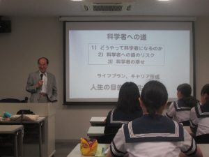 まずは黒澤尋学部長の講話を聞き、本校のSSH運営指導委員でもある高橋智子准教授からもご挨拶をいただきました。