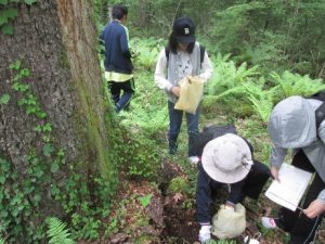 自然科学部のダニ研究班が、富士山の土壌調査を実施しました。今回は富士山五合目の佐藤小屋及び山中ハリモミ純林について、ラインセンサス及びコドラート調査を実施しました。富士山の土壌採取は限られた中での実施ではありますが、天気にも恵まれ、計画的に実施することができました。