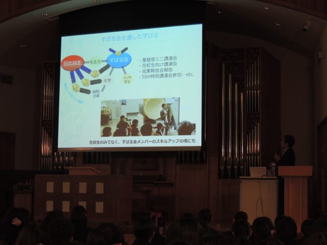 SSH校での研究の経験が、大学、大学院、そして企業でどのように展開していくのかがよくわかるお話でした。SDGsの観点でどのような社会貢献ができるかを大切にしているという企業の姿勢についても学ぶことができました。「食」も「美」も、あらゆる分野に「科学」があることに気づかせていただきました。