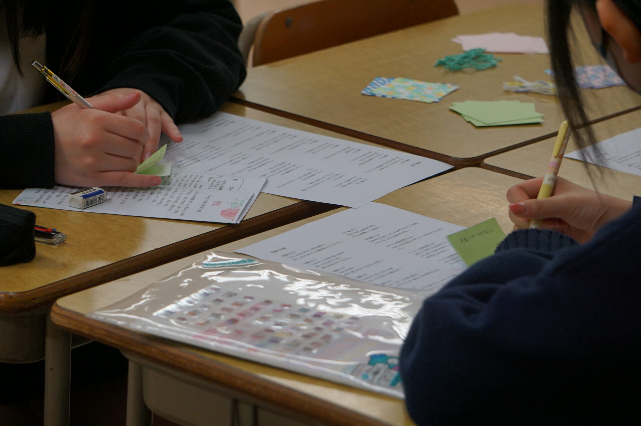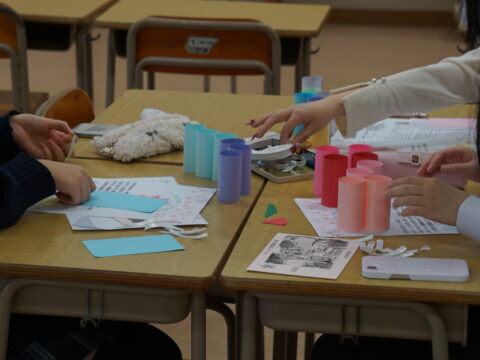 花の日(創立記念日)に山梨英和と深い関わりのある甲府教会で行う炊き出しや食料配布に添えるメッセージカードを作り教会を訪問しました