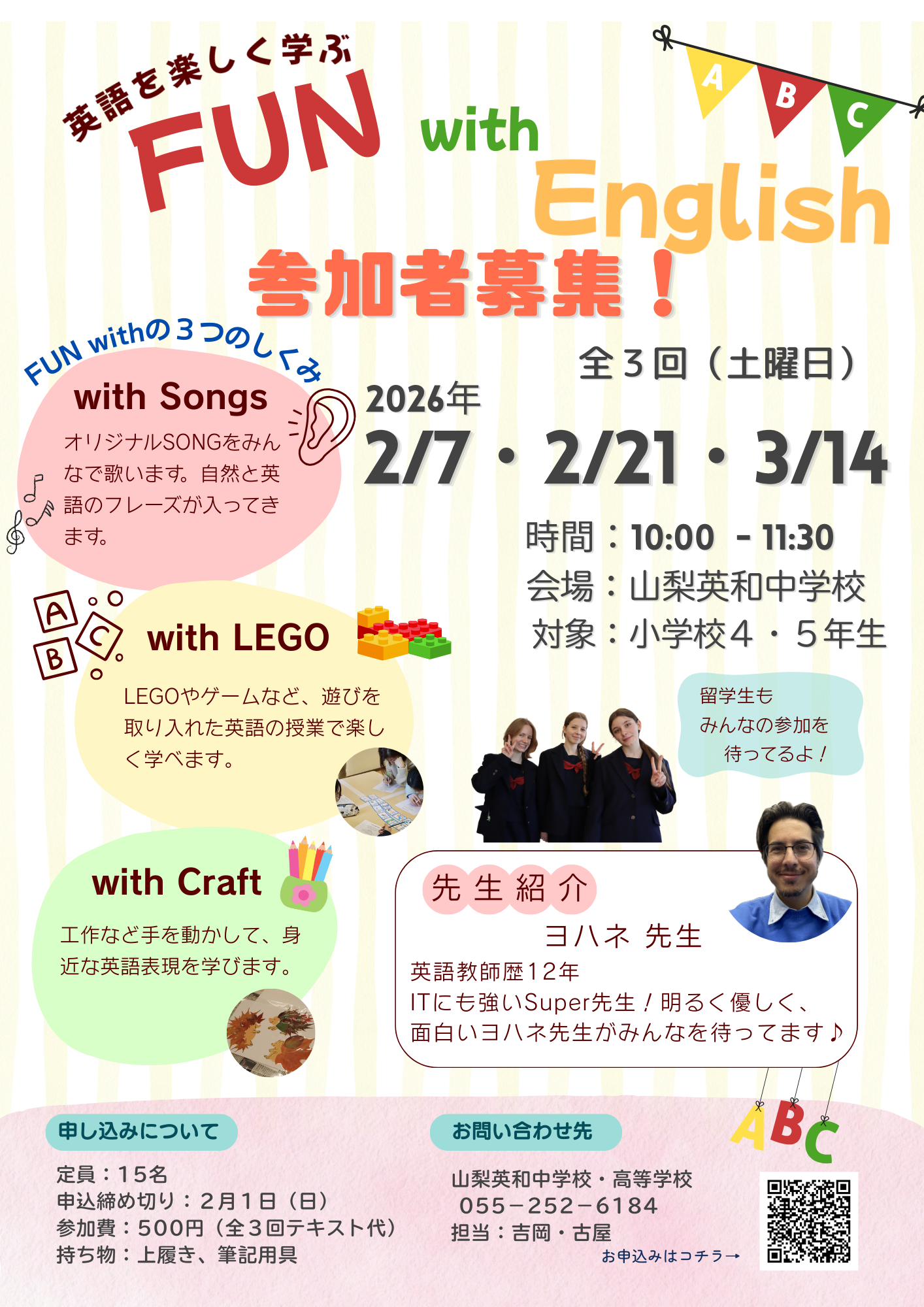 【受付終了】📣小4・小5児童対象 『FUN with English』 参加者募集中!