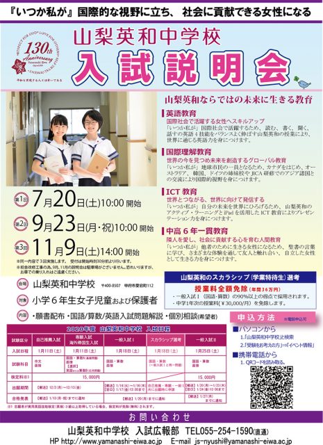 内 容:願書配布、入試説明、出願方法、過去問解説、個別相談等