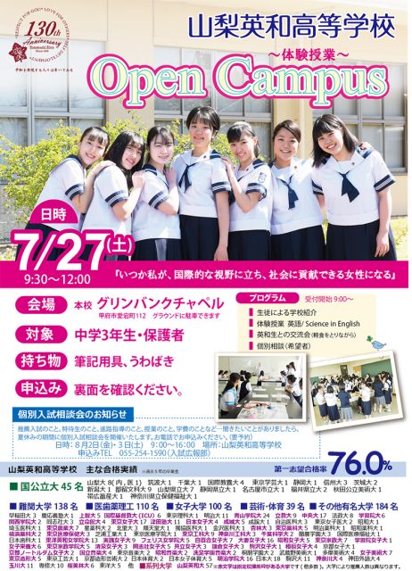 山梨英和高校の授業を体験しませんか!