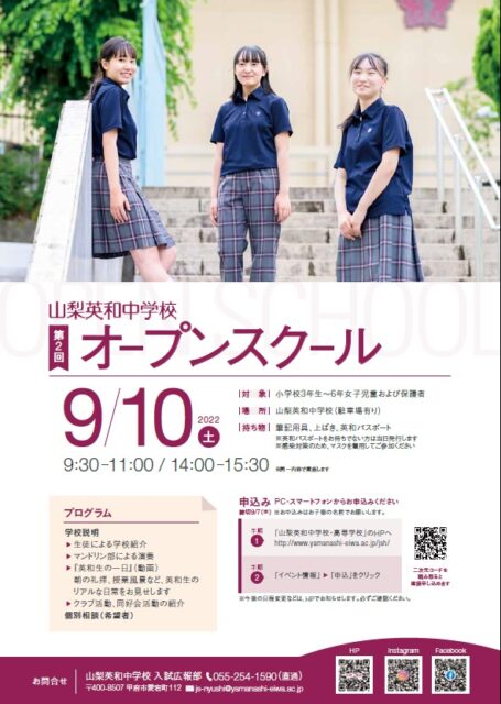 第2回 山梨英和中学オープンスクール予定通り実施します