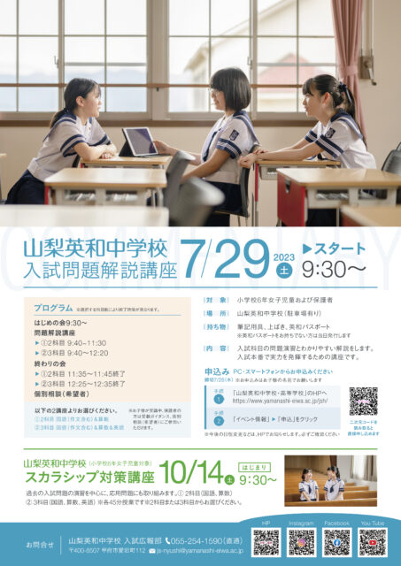 山梨英和中学校 入試問題解説講座のお知らせ