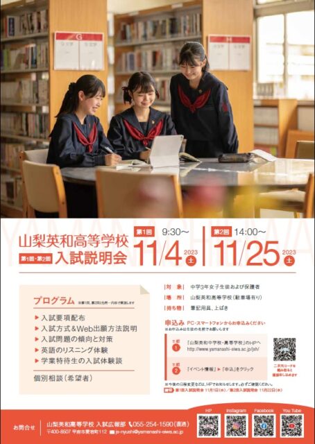 山梨英和高校の受験をお考えの方は、ぜひご参加ください。