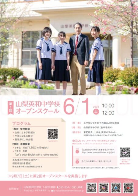 ※今後の入試行事はこちらから ⇒ 山梨英和中学校入試行事一覧