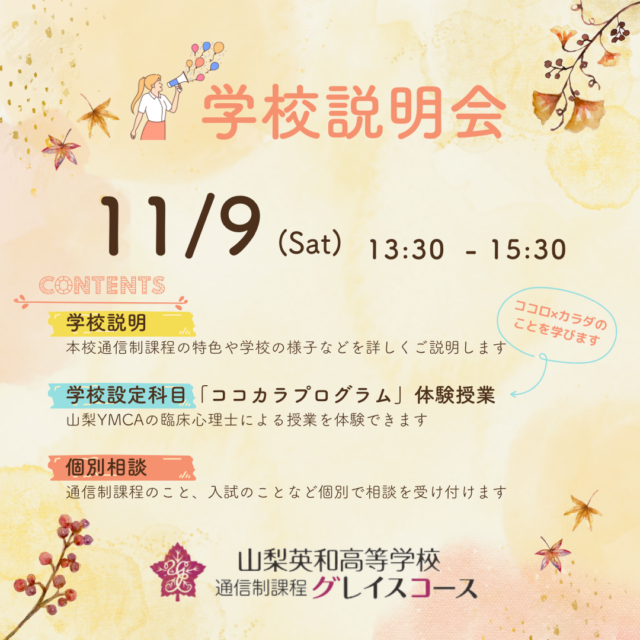 11.9(土) 山梨英和高校通信制課程 学校説明会のお知らせ